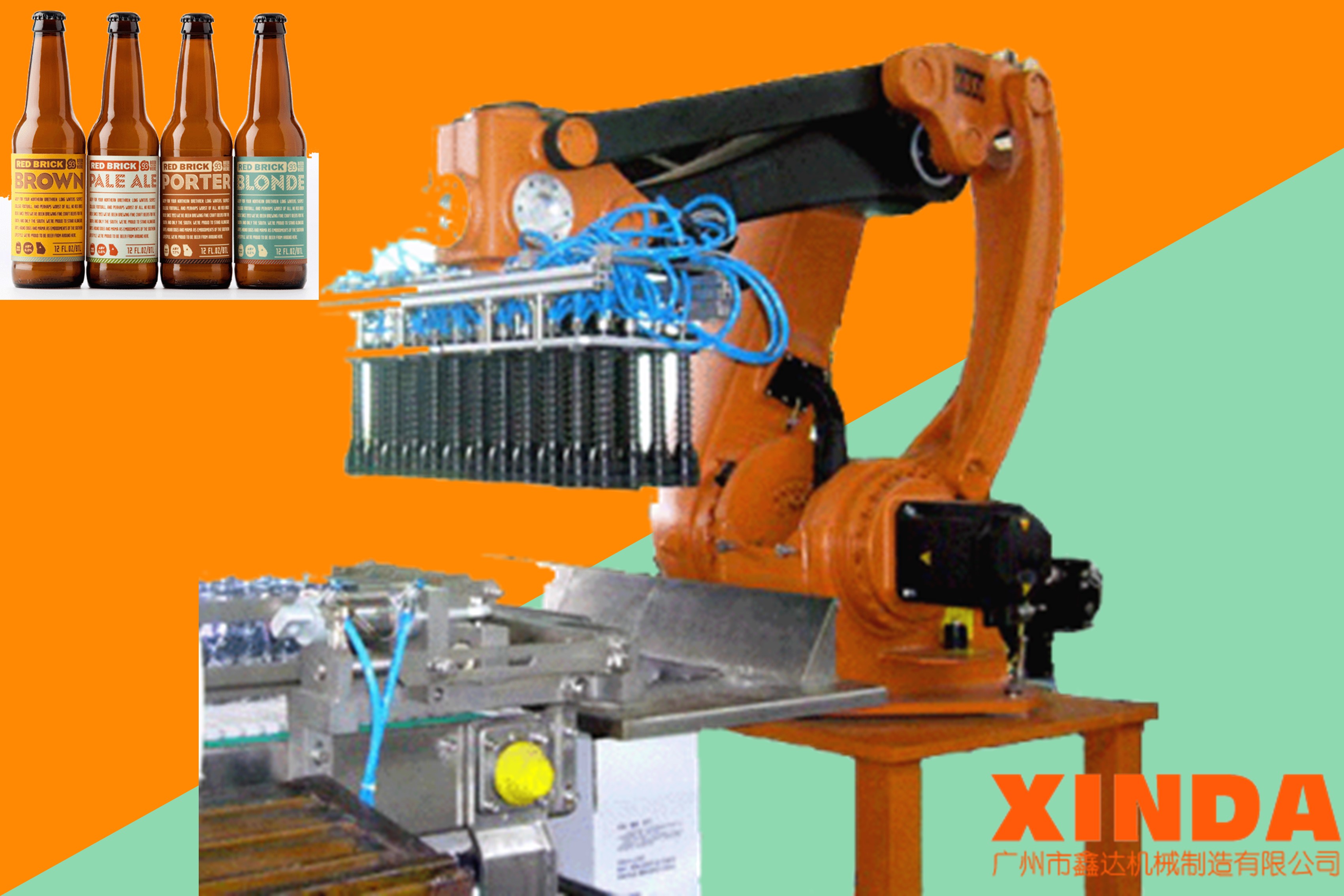 裝箱工位采用機器人裝箱,由于大米是袋裝的,如何設計抓手是一個難點,要確保大米裝進箱子里面要均勻、整齊,如此方可不阻礙到下一包進箱的排列;另外還要考慮到生產效率是否能跟上,設備的投入必然要比人工效率高才可以帶來企業(yè)的投入,;因而根據以上出發(fā)點,鑫達機械工程師集合國內外先進技術以及公司成功的案例經驗,設計出了采用一次抓兩箱,并且大米來料前通過抖動進行大米均勻,確保抓取機構抓取平穩(wěn),目前此款新穎的大米機器人裝箱機構獲得客戶的充足肯定。