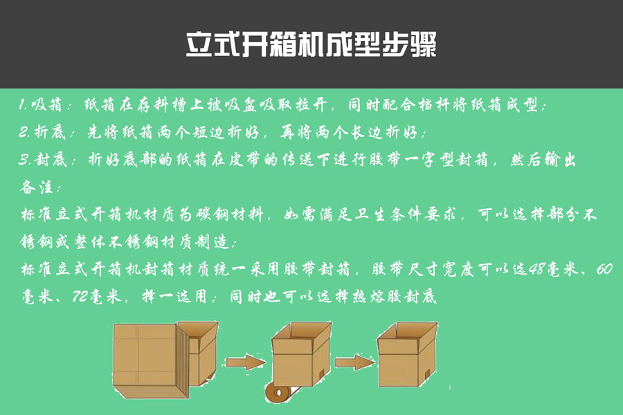適用行業(yè):日化、食品、醫(yī)藥、化工等對設(shè)備材質(zhì)衛(wèi)生級別要求高的行業(yè)紙箱成型機。